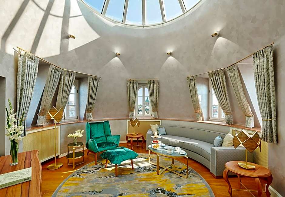 Spacious, open-plan suite offering living/sleeping areas with elegant décor, exclusive Nespresso machine, and great views.